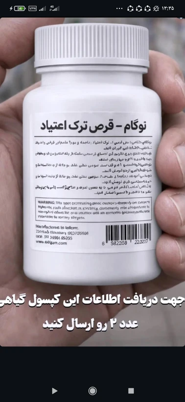 کپسول نوگام ترک اعتیاد برای روزی دو گرم تا یک مثقال شیره/ دو گرم تا یک مثقال تریاک/دو عدد تا سه عدد متادون